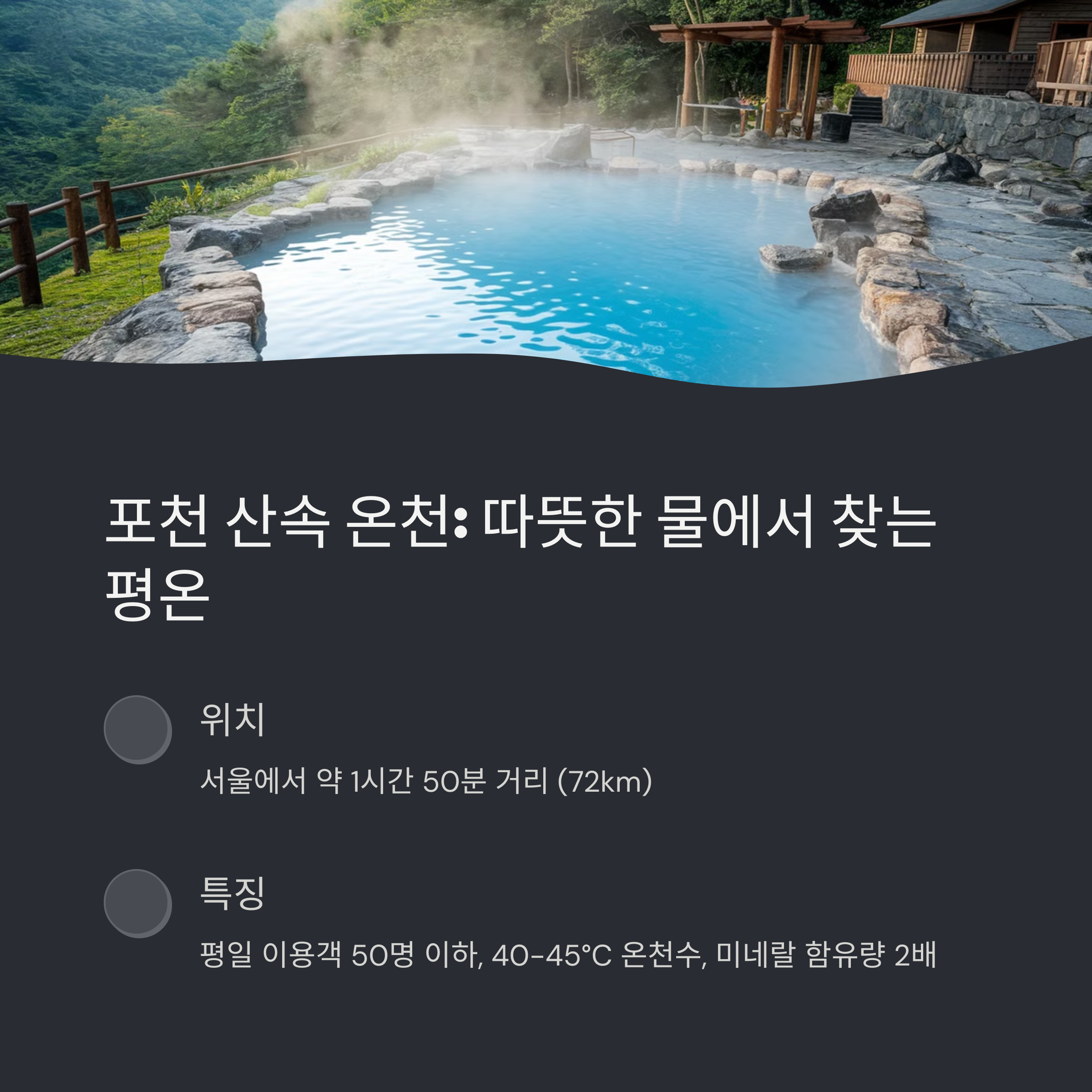 | 조용한 자연과 계곡소리가 함께하는 힐링 공간 | 햇살 가득한 숲길과 감성 북스테이가 있는 길 | 현지인만 아는 고요한 바닷가 비밀 장소 |